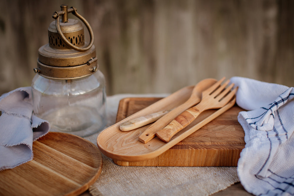 Puusta valmistetut laadukkaat ja näyttävät välineet keittiöön.